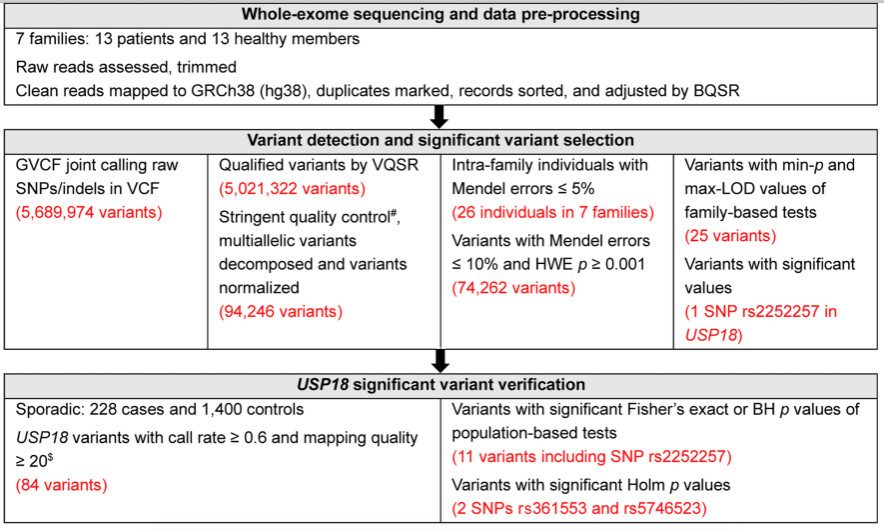 近日,开云下注(中国)官网附属第三医院脑病中心神经免疫邱伟、余青芬团队在国际知名神经病学期刊Journal of Neurology, Neurosurgery and Psychiatry (JNNP)发表了题为“Clinical and genetic analysis of familial neuromyelitis optica spectrum disorder in Chinese: associated with ubiquitin-specific peptidase USP18 gene variants”的原创性研究成果。研究回溯了国内四个知名神经免疫性疾病中心2016-2020年间诊治的NMOSD患者的临床资料,共发现10个NMOSD家系,并对这些家系成员进行外显子组测序和临床特征研究。结果发现,我国NMOSD患者中家族性患者约占0.87%,家族性患者的发病严重程度高于散发患者。位于泛素特异性肽酶USP18基因启动子和增强子区域上的SNP rs2252257多态性可能参与家族性NMOSD的发病。