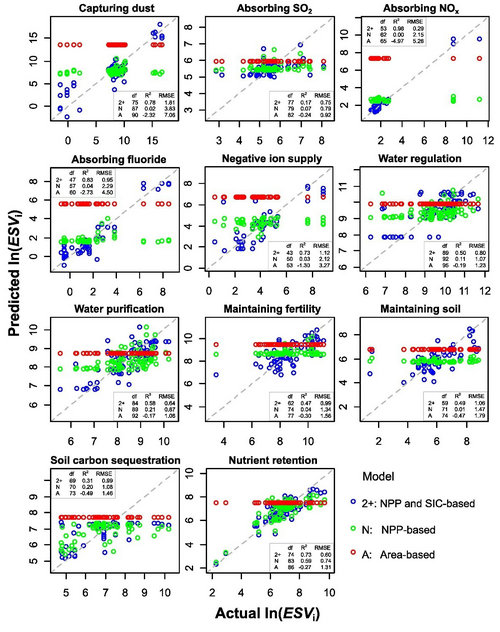 图:比较3种生态系统服务价值评估方法的模型表现