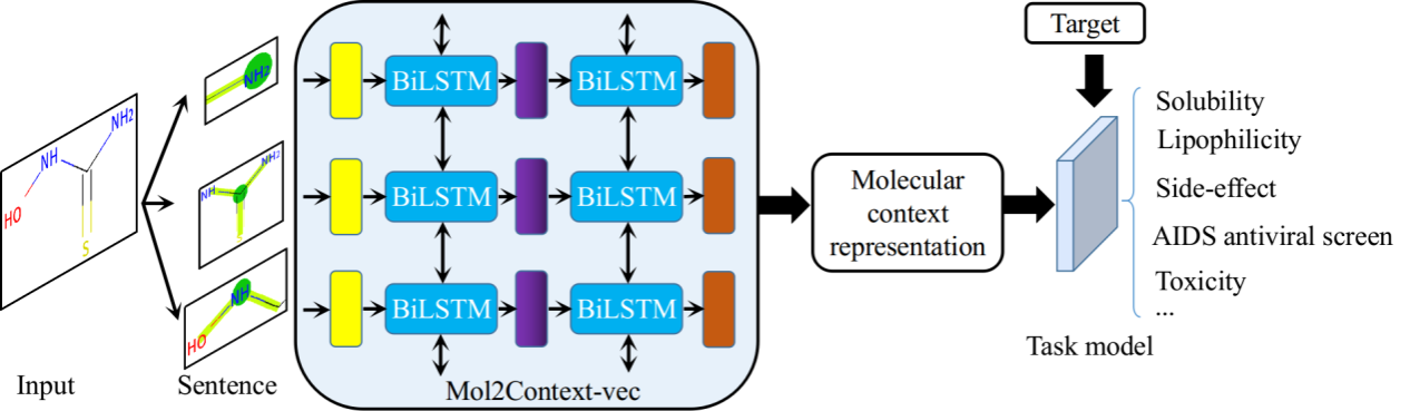 近日,我校智能工程学院陈语谦教授团队在国际知名杂志Briefings in Bioinformatics在线发表了题为“Mol2Context-vec: learning molecular representation from context awareness for drug discovery”的研究论文。该研究提出了一种新颖的深度上下文双向长短期记忆架构Mol2Context-vec,它可以整合不同层次的内部状态来以动态表示分子子结构,并且获得的分子上下文表示可以捕获任何原子团之间的相互作用,尤其是一对拓扑上相距遥远的原子团。