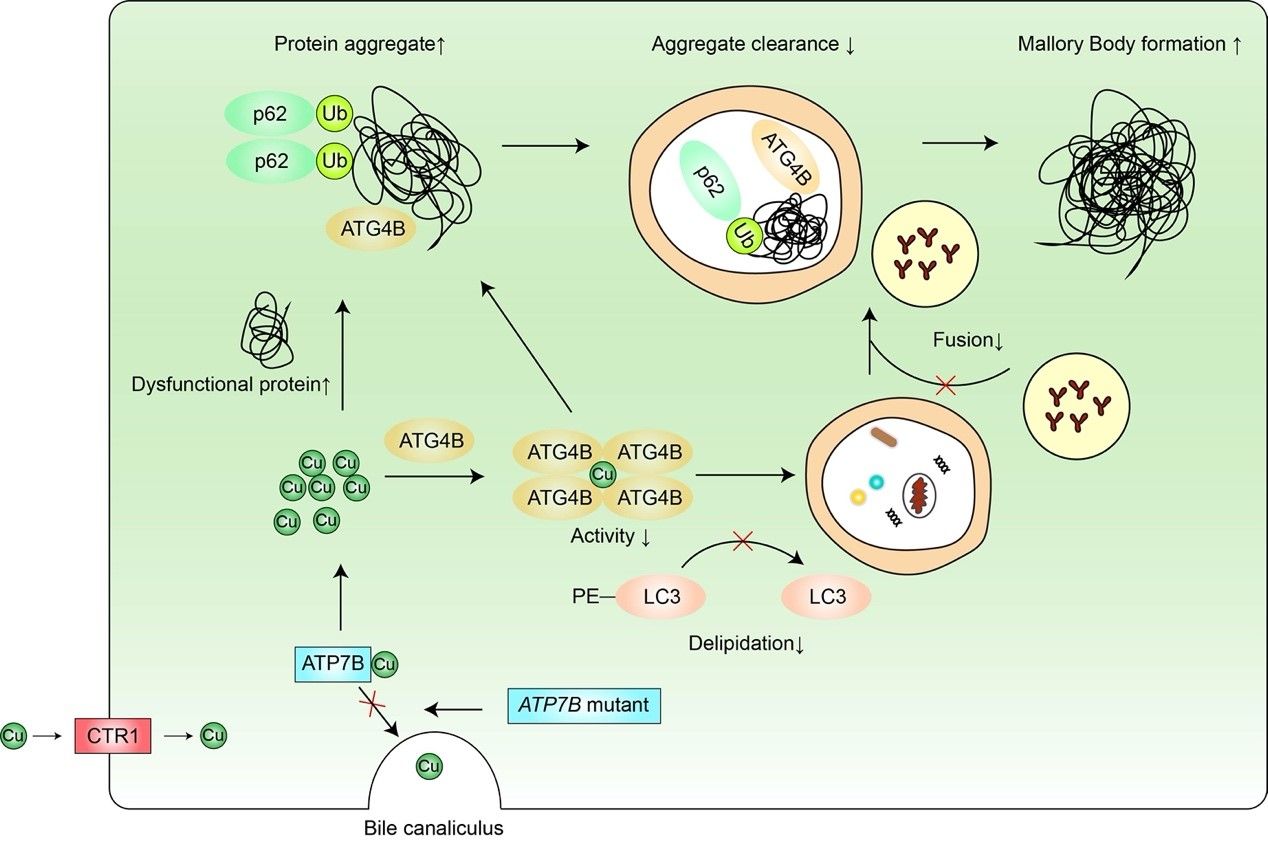 图1. ATG4B参与铜离子蓄积形成Mallory小体形成示意图