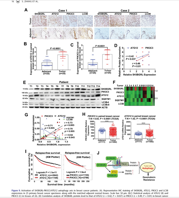 图:SH3BGRL-PIK3C3/ATG12通路活化导致乳腺癌细胞化疗耐药的机制