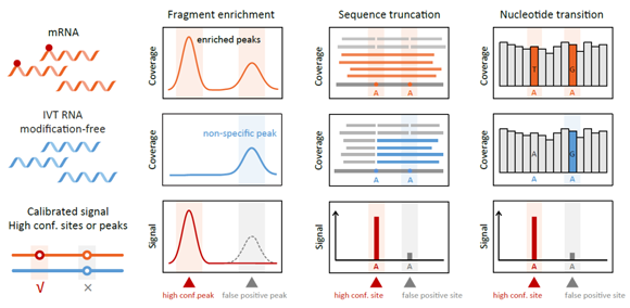 准确且定量地鉴定RNA修饰位点及其修饰比例,是深入了解RNA修饰的分布、功能及其背后的机理机制的前提。然而如何得到高置信度、单碱基精度RNA修饰位点,以及对修饰位点的精准定量是目前领域内的研究难点。近年来,多种新技术的出现使得检测全转录组中的各种RNA修饰位点成为可能。尽管领域内已有多种RNA修饰检测方法可供选择,但是在实际应用中效果往往差强人意。高假阳性率、低分辨率的问题时常困扰研究者。某些情况下,不同研究报道的同一种修饰的位点数甚至能相差2-3个数量级。即使是目前相对成熟、应用最广的MeRIP-seq技术,也存在大量非特异性抗体富集和低重复性问题。