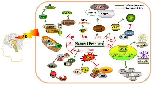 图1 天然产物对抗AD的主要机制