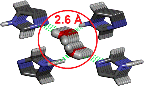 图1. 咪唑四聚体水通道的核心区域示意图。