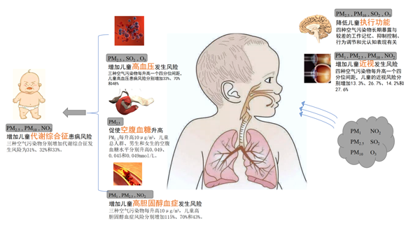 图2. 空气污染对儿童青少年的多种健康结局的影响
