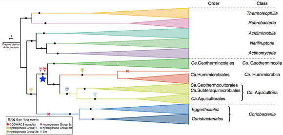 图3 放线菌门H2依赖的WLP固碳方式的进化历史