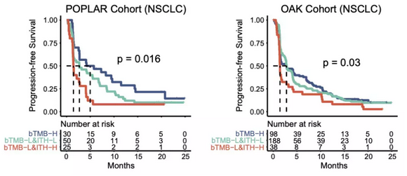 随着肿瘤检测技术的发展,液体活检的重要性得到越来越多的认可,尤其是外周血循环肿瘤DNA(ctDNA)。为了探究肿瘤内异质性的预测效果能否适用于ctDNA数据,研究团队也引入了POPLAR和OAK两个免疫治疗队列。结果发现,发现肿瘤内异质性可从bTMB-L组有效区分出获益人群,提示将来有望利用ctDNA检测这种经济、通用且无创的方法去推广和应用 ITH,进一步降低患者负担。