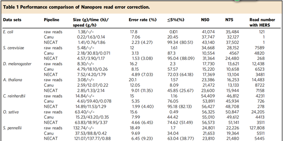 表1 NECAT序列错误校正性能评估