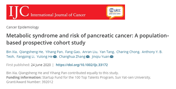 除了肠道菌群相关药物安全性相关研究,课题组也关注了消化道肿瘤危险因素,其近期一项研究队列研究发现代谢综合征,尤其是腰围及血糖,可升高胰腺癌风险。论文发表于肿瘤领域经典杂志Int J Cancer (IF: 5.143)。