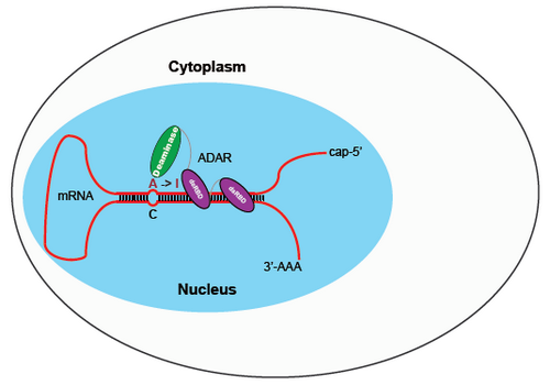ADAR蛋白结合和编辑RNA双链区域示意图