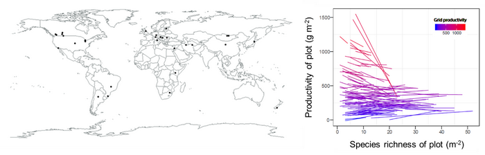 全球尺度自然草地群落调查地点及多样性—生产力关系的变化