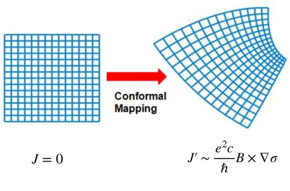 共形变换产生反常电流的示意图