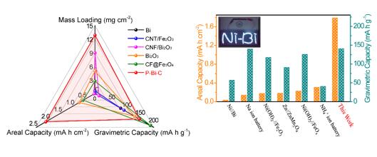 多孔铋-碳复合材料和所研发的镍铋电池的面积容量和质量比电容