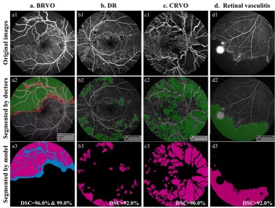 图2. 常见缺血性视网膜疾病缺血区的自动分割