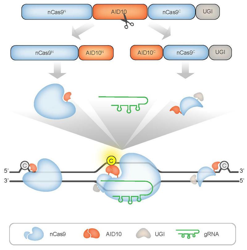 开云下注(中国)官网网讯(通讯员李剑峰)CRISPR衍生的胞嘧啶/腺嘌呤碱基编辑器(CBE/ABE)由Cas9缺刻酶(nCas9)与胞苷或腺苷脱氨酶融合而成,能够高效实现基因组C>T或A>G的碱基突变,对动植物基因功能研究、作物分子育种和人类遗传病治疗具有重要意义,被喻为CRISPR皇冠上的明珠。和CRISPR技术一样,CBE/ABE也会因gRNA结合到基因组中与靶序列相似的序列而造成脱靶编辑(即gRNA依赖性脱靶)。近年来的研究进一步表明,CBE/ABE包含的胞苷或腺苷脱氨酶结构域会在动植物基因组和转录组中造成不可预测的DNA/RNA随机脱靶编辑(即gRNA非依赖性脱靶)。这种随机脱靶给CBE/ABE的广泛应用带来了负面影响。目前,解决gRNA非依赖性脱靶主要依赖点突变提高脱氨酶的高保真性或引入额外的脱氨酶活性调控元件。然而,提高脱氨酶特异性的点突变策略缺乏通用性,无法适用于不同序列/类型的脱氨酶,而且消除DNA和RNA脱靶的点突变叠加后可能会同时降低脱氨酶在靶位点的脱氨效率;引入脱氨酶调控元件则会增加系统的复杂性,也可能降低其通用性。