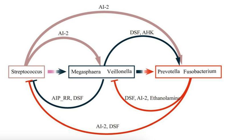 口腔菌群组装过程中核心菌种通过QS信号分子进行双向调控