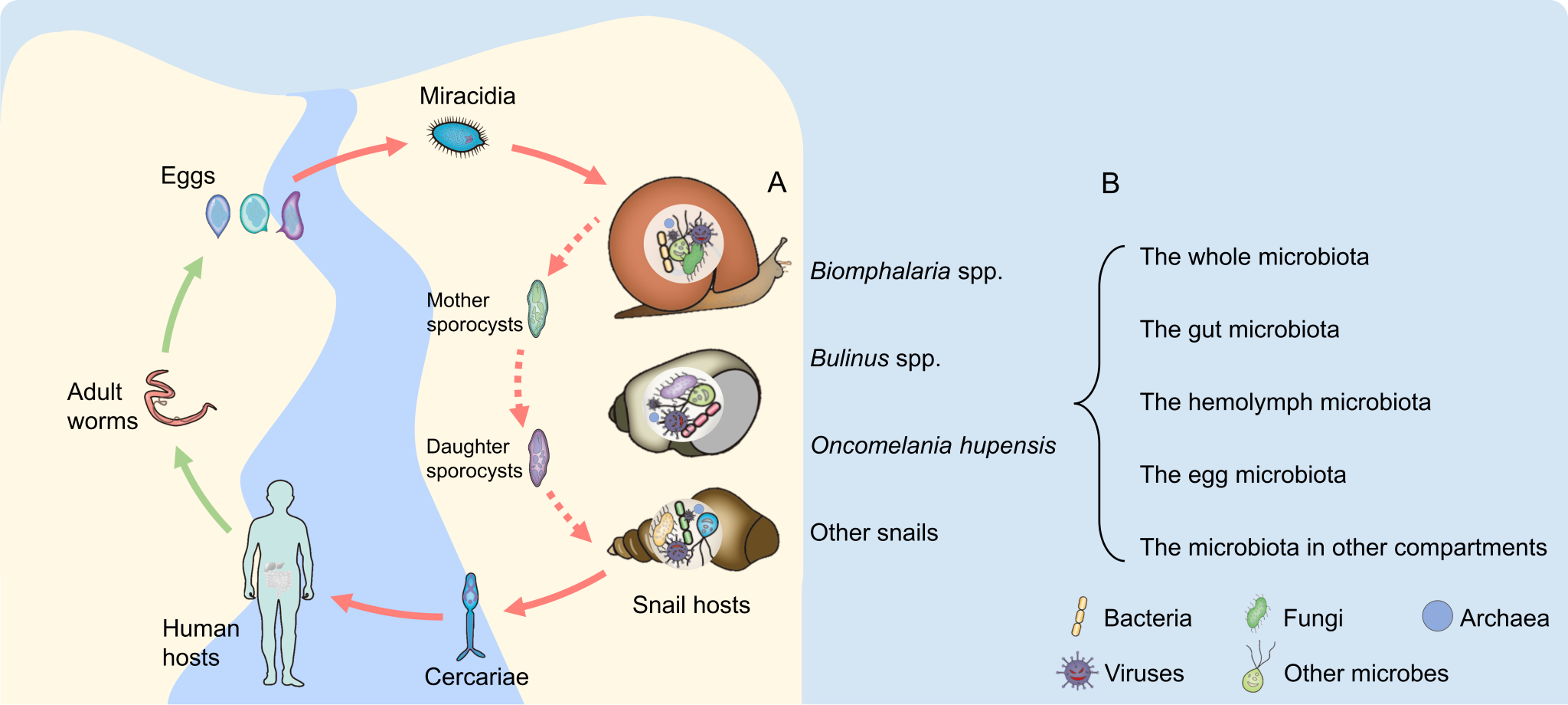 人体血吸虫的生活史及其中间宿主螺类的微生物群