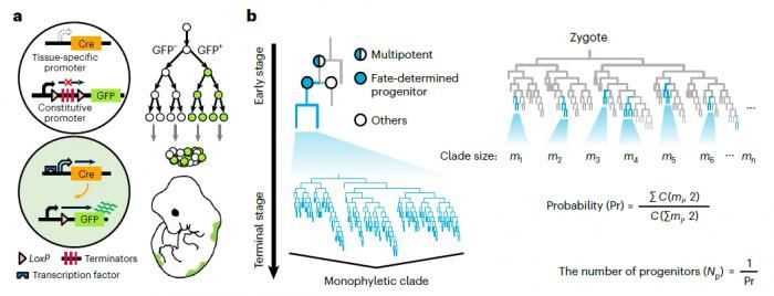 开云下注(中国)官网网讯(通讯员熊丽娜)在成熟的多细胞生物体内,具有特定功能的细胞群通常源自于一组祖先细胞。细胞群体的谱系多样性是由这些祖细胞的数量决定的,因此估计祖先细胞群体数量是发育生物学的重要研究问题之一。而传统的研究手段主要依赖于组织特异性的启动子介导报告基因的表达,进而对目标细胞群体进行计数。这一类研究手段的可靠性高度依赖于启动子的选择,其中,启动子的组织特异性与时空表达动态都会使估计结果产生偏差。