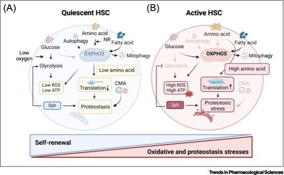 2024年9月20日,文卓谦教授与赵萌教授在《Cell》杂志子刊《Trends in Pharmacological Sciences》上发表了一篇题为《Metabolic Regulation in Normal and Leukemic Stem Cells》的综述文章。该文章结合两位教授课题组的最新研究成果与国内外相关报道,系统梳理了细胞代谢如何精细调控造血干细胞(HSC)的代谢活动和功能维持的机制。文章详细探讨了HSC在增殖与衰老过程中如何通过葡萄糖、氨基酸及脂质代谢调控自噬、氧化还原反应和蛋白质稳态等细胞应激反应的分子机制,同时探讨了相关的临床干预策略。