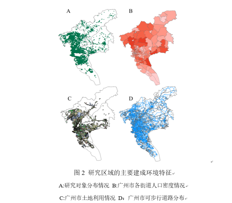 研究团队利用COHERENCE项目(陈亚军教授课题组在广州地区的一项大规模前瞻性队列研究)2016/17至2019/20学年的队列数据,基于5Ds框架(Density, Diversity, Design, Destination accessibility, Distance to transit)获取的居住地周边建成环境数据,分析了96,402名儿童青少年的体质健康和人口统计信息。该研究采用了多层次的统计模型,考虑了学生、学校和行政区的层次结构,以准确评估建成环境对体质健康的影响。此外,研究还采用了限制性立方样条(RCS)曲线来揭示建成环境与体质健康之间的非线性关系,并进行了阈值分析以确定不同建成环境特征对体质健康影响的临界点。