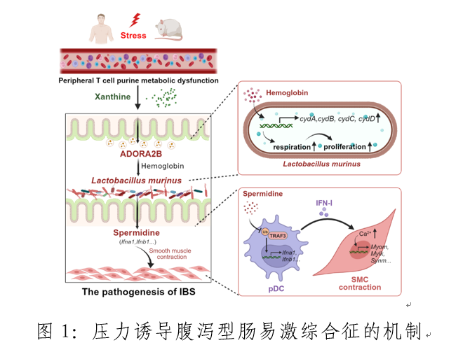 靳津团队揭示亚精胺通过抑制一型干扰素表达调控压力诱导的腹泻型肠易激综合征的分子机制