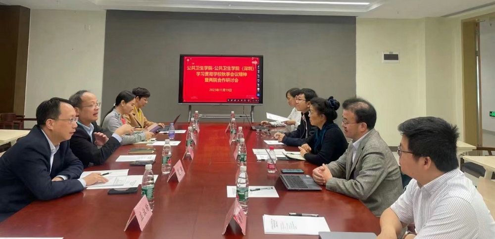 11月19日下午,秋季工作会议刚刚结束,公共卫生学院(深圳)和公共卫生学院领导班子成员立即召开了学习贯彻学校秋季会议精神暨两院合作研讨会,就如何落实秋季工作会议精神、聚力建设高水平公共卫生学院进行了深入的交流与探讨。