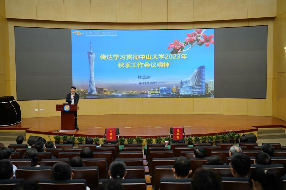 会议期间,中山眼科中心党政领导赴深圳校区主会场参会。中心主任、医院院长林浩添教授作专题报告,立足服务国家战略与中大学科和学部优势,介绍了中山眼科中心近年来在多学科和跨学部交叉、医教研产融合、拔尖人才自主培养领域的代表性成果、创新理念与未来规划。中山眼科中心视频分会场设于珠江新城院区学术报告厅,除主会场参会人员外的中心党政领导,行政副科及以上干部,党支部书记,实验室PI,副高以上专家,科研秘书等114人在分会场参加了本次会议。