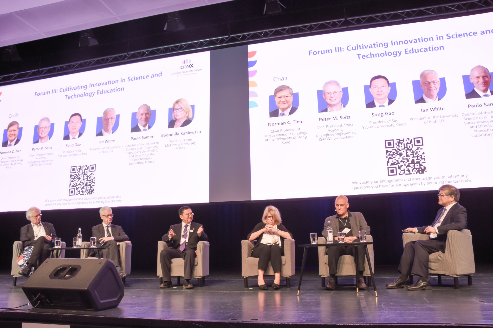 开云下注(中国)官网网讯(通讯员李广众、张新楠)7月11日,高松校长应邀前往瑞士达沃斯出席iCANX达沃斯科学峰会,与诺贝尔奖得主及全球上百名科学界和产业界的参会代表等一起,聚焦创新、科学、技术、投资、管理、创业(ISTIME)主题,共话创新人才的培养和科学的未来。