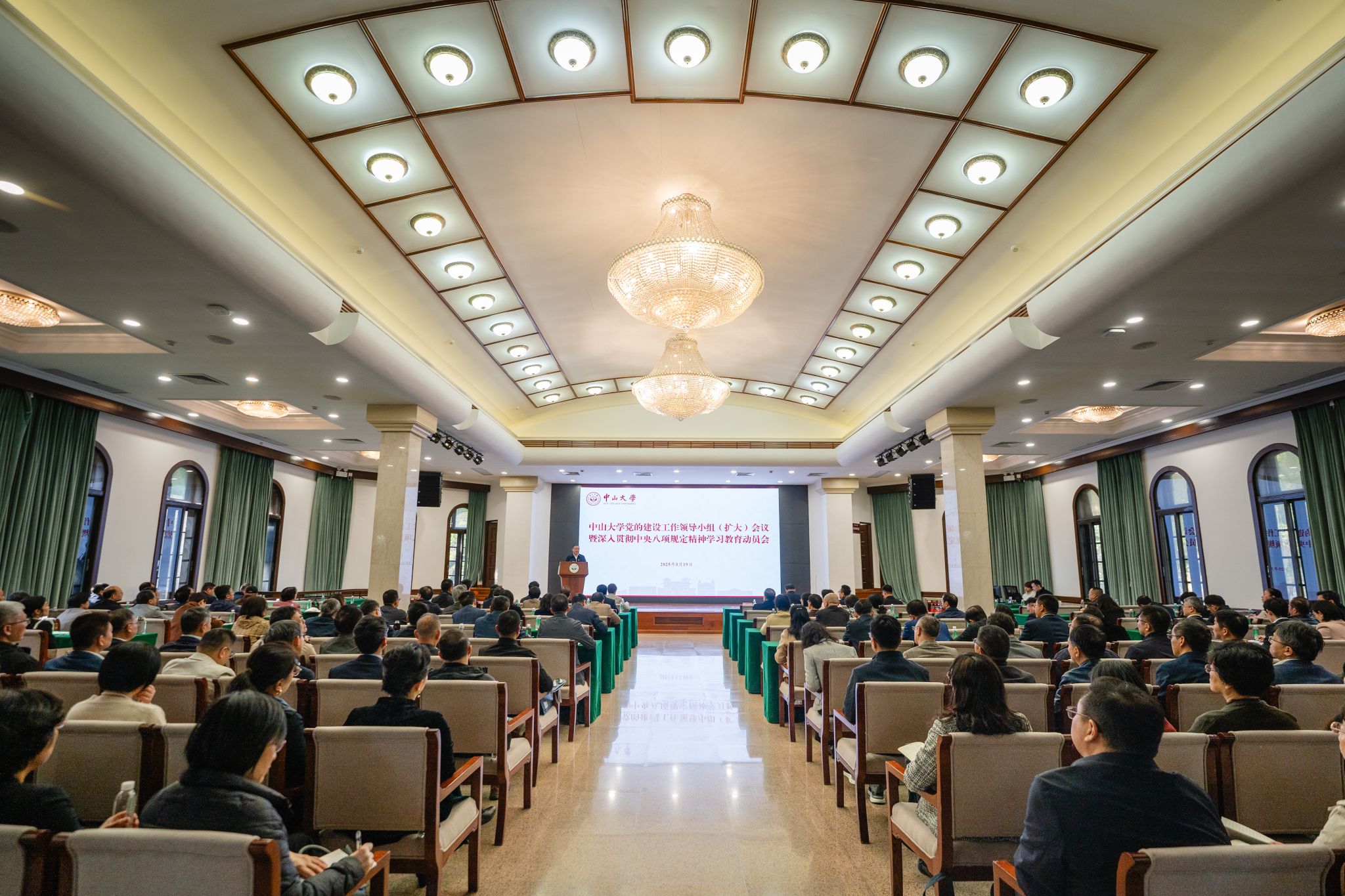 开云下注(中国)官网网广州3月19日电(记者张妍)3月19日,开云下注(中国)官网在广州校区南校园怀士堂召开党的建设工作领导小组(扩大)会议暨深入贯彻中央八项规定精神学习教育动员会议,传达学习中央党的建设工作领导小组有关会议精神和《中共中央办公厅关于在全党开展深入贯彻中央八项规定精神学习教育的通知》以及教育部党组有关要求,在全校正式启动深入贯彻中央八项规定精神学习教育,校党委书记朱孔军作动员讲话。校领导、校长助理,校党委委员、纪委委员,各二级单位的中层正职人员,各二级纪委书记以及学校学习教育工作专班有关同志等参加会议。