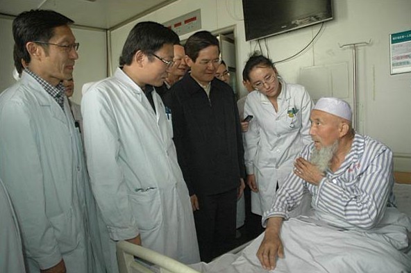 广东省委常委、常务副省长徐少华(左三)到喀什地区第一人民医院慰问,左二为我校附属三院刘加军教授 “援疆是我人生征途上的又一个里程碑,我将会在这段人生旅途上留下我新的足迹…这段经历会积淀下我人生中珍贵的储蓄和财富,我自己生命的价值和生活的真谛也会在这段经历中体现出来…。我会在援疆工作中,团结各个民...