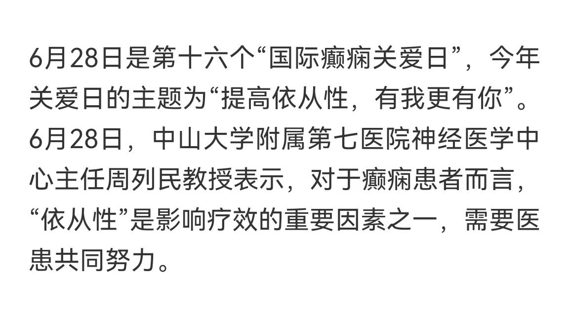 6月28日是第十六个“国际癫痫关爱日”,今年关爱日的主题为“提高依从性,有我更有你”。6月28日,开云下注(中国)官网附属第七医院神经医学中心主任周列民教授表示,对于癫痫患者而言,“依从性”是影响疗效的重要因素之一,需要医患共同努力。癫痫管理现状依然严峻,依从性差会导致复发据介绍,癫痫是神经系统常见的疾病之一,由...