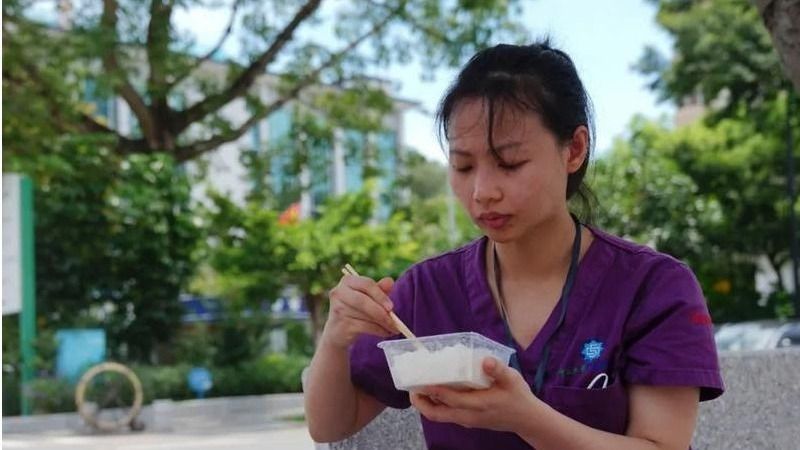7月14日,上午11点30分,手机天气APP上显示的实时体感温度已经达到了34度,中大五院外科护士长谢敏仪负责海虹社区所辖的5个核酸采样点的管理统筹工作。