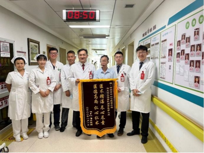 近日,深圳市民张先生来到中山七院普通外科,为医护人员送上一面锦旗——一年前,他刚被确诊为晚期原发性肝癌并破裂出血,如今,经过一年多的抗癌治疗,他的肝癌指标“甲胎蛋白”从术前超过20000单位/毫升恢复到完全正常水平,定期肝脏CT检查也未见肿瘤复发,取得了肝癌完全缓解的治疗结果。对此,张先生对中山七院普外...