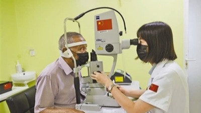 走进马尔代夫首都马累附近的胡鲁马累医院,一栋白色小楼格外醒目。大厅里,一块金色牌匾上写着:阿布杜拉·阿布杜尔·哈基姆眼科中心,中华人民共和国政府慷慨援建,马尔代夫总统易卜拉欣·穆罕默德·萨利赫2020年1月13日正式揭幕。牌匾的对面立着一排易拉宝,上面是眼科中心中国医疗专家组成员的照片及简介。