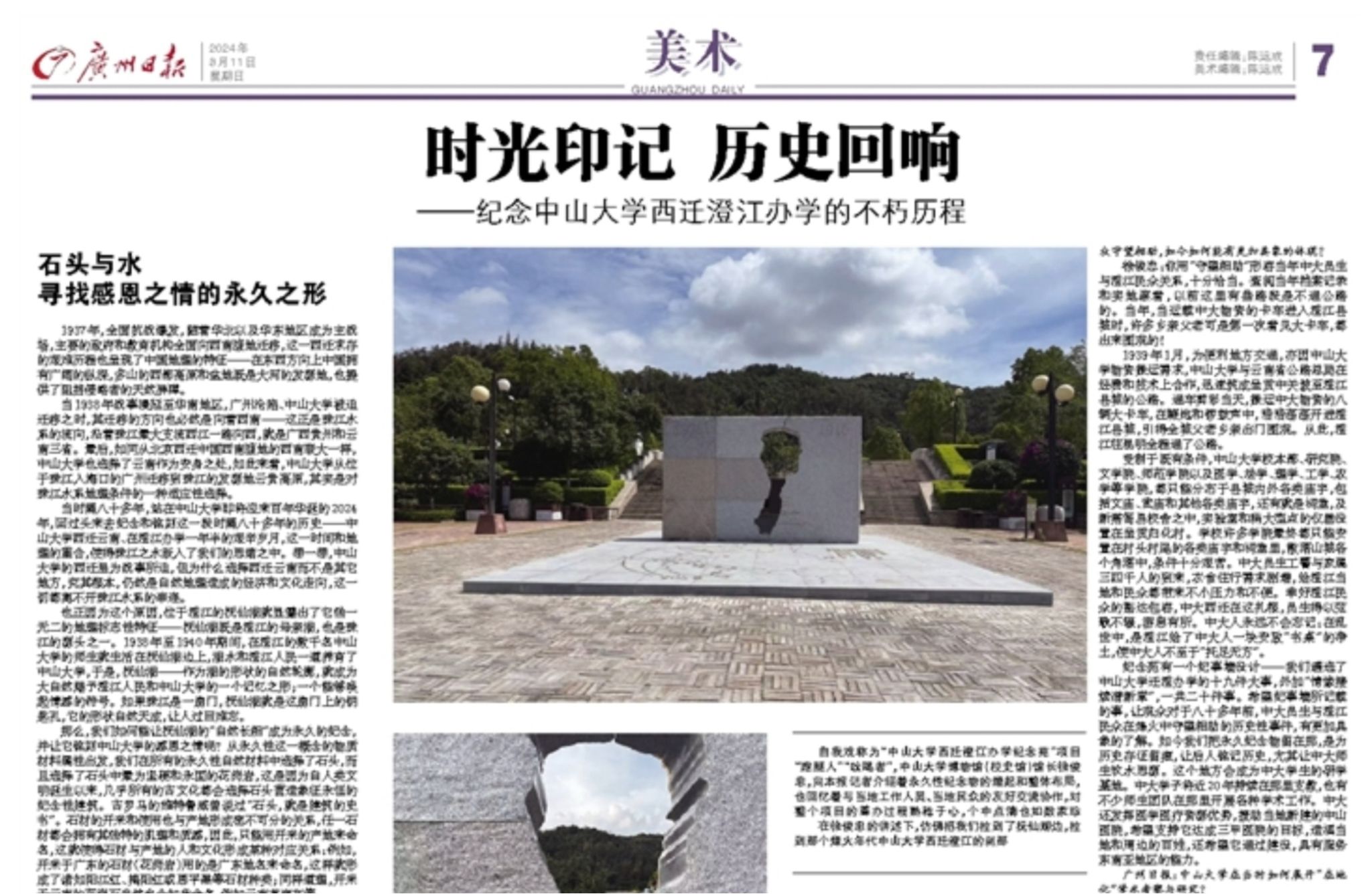 石头与水寻找感恩之情的永久之形1937年,全面抗战爆发,随着华北以及华东地区成为主战场,主要的政府和教育机构全面向西南腹地迁移,这一西迁求存的艰难历程也呈现了中国地理的特征——在东西方向上中国拥有广阔的纵深,多山的西部高原和盆地既是大河的发源地,也提供了阻挡侵略者的天然屏障。当1938年战事漫延至华南地...