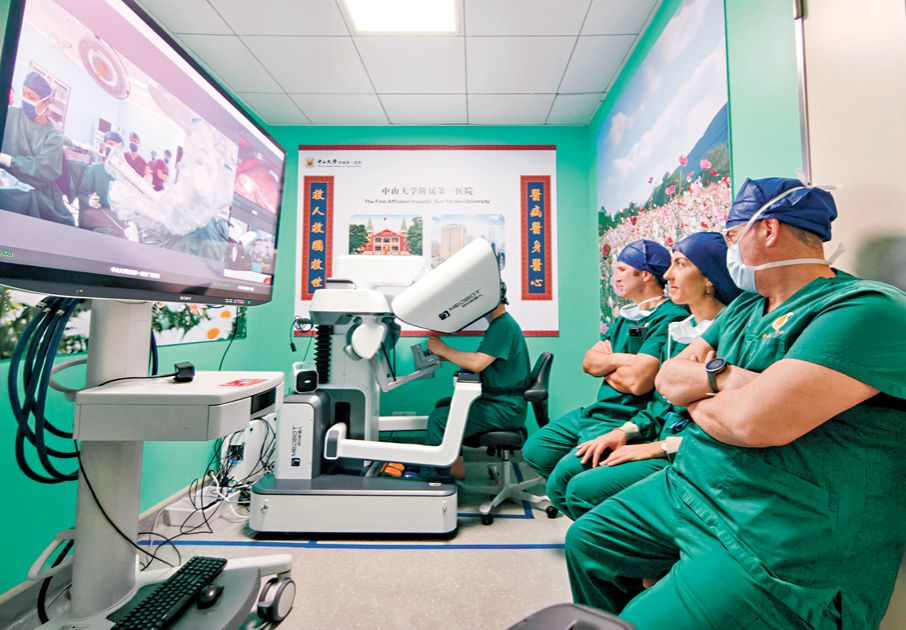 日前,法國專家在中山大學附屬第一醫院觀摩機器人胰十二指腸切除術。(中新社)香港文匯報綜合中新社及封面新聞報道,「此次來到廣州觀摩學習收穫滿滿。」法國里昂讓·默莫茲私立醫院外科中心普通外科及消化外科主任拉斐爾·布爾達里亞14日在廣州表示。他帶領3位同院肝膽胰外科專家在中山大學附屬第一醫院進行5天的觀摩學...