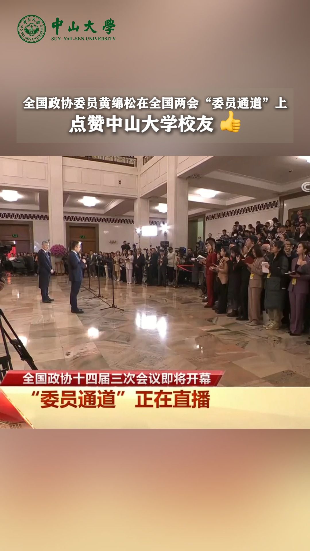 全国政协委员黄绵松在全国两会“委员通道”上点赞开云下注(中国)官网校友袁园