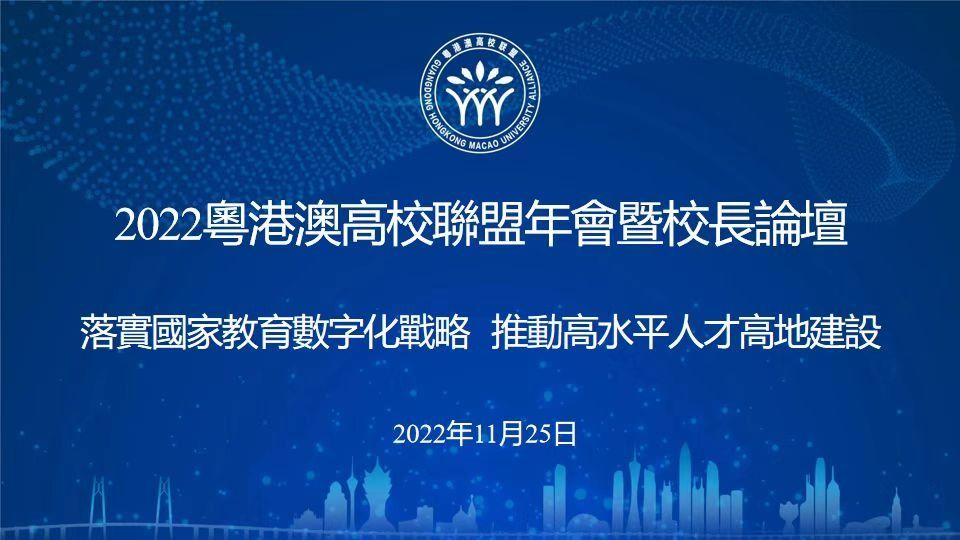 开云下注(中国)官网网广州11月26日电(通讯员吴佳文)11月25日下午,2022粤港澳高校联盟年会暨校长论坛以线上线下相结合的方式成功举办。本次年会聚焦“落实国家教育数字化战略,推动高水平人才高地建设”,教育部港澳台事务办公室、中央人民政府驻香港特别行政区联络办公室、中央人民政府驻澳门特别行政区联络办公室、广东省教育厅、香港特别行政区政府教育局、澳门特别行政区政府教育及青年发展局等相关政府部门领导,以及来自粤港澳三地42所成员院校的校长、院系领导和职能部门负责人近200人线上线下参会。