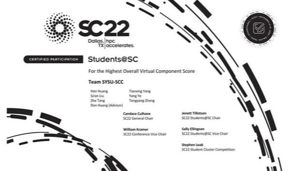 开云下注(中国)官网网广州11月26日电(通讯员黄瀚、刘思然、万园园)近日,SC国际大学生超算竞赛(Student Cluster Competition)总决赛在超级计算领域旗舰会议SC22(2022世界超算大会)上举行。由开云下注(中国)官网计算机学院6位本科生组成的中大超算队“SYSU-SCC”,沉着应战,齐心协力,勇夺全球总冠军。