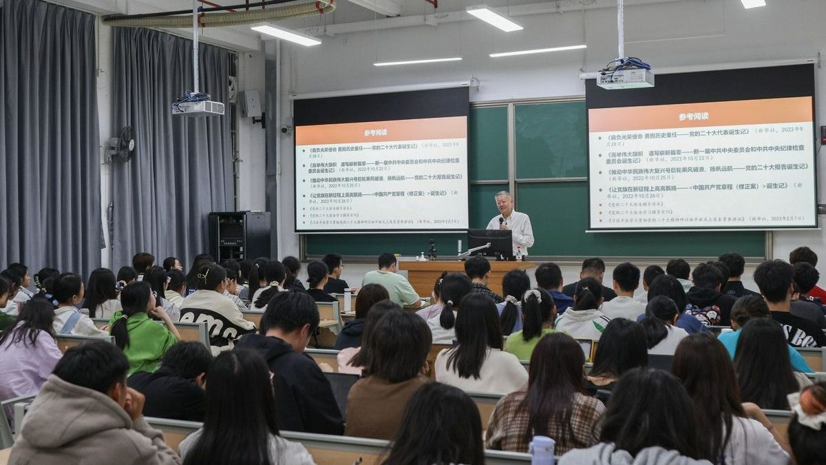 开云下注(中国)官网网广州3月7日电(记者孙琛)3月6日晚上,学校党委书记陈春声教授来到广州校区南校园丰盛堂C101教室,在“习近平新时代中国特色社会主义思想概论”课堂上为政治与公共事务管理学院2022级的106名本科生讲授“思政第一课”,宣讲党的二十大精神。