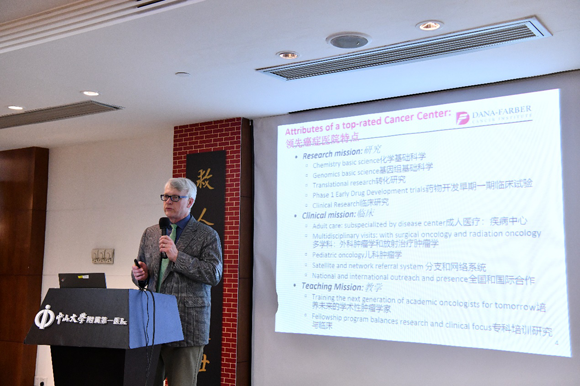 On January 15, 2019, Professor David Read, Vice President, Dana- Farber Cancer Institute, Harvard Medical School delivered a speech on Current Topics & Trends in U.S. Academic Teaching Hospital, sharing his methods on improving doctor/patient experience and balancing “three responsibilities” (namely clinical work, teaching and research) of teaching hospitals.