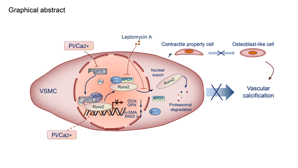 Recently, Prof. Hui Huang’s team from the Eighth Affiliated Hospital, Sun Yat-sen University, found a new progress in uncovering the mechanism of VC in CKD, and the new research achievement entitled ‘SIRT6 protects vascular smooth muscle cell from osteogenic transdifferentiation via Runx2 in chronic kidney disease’ was published in Journal of Clinical Investigation. Using clinical samples from CKD patients, they identified that SIRT6 was decreased in PBMCs and calcified arteries. They demonstrated the effect of SIRT6 inhibition VC in CKD and suppression of osteogenic transdifferentiation in VSMCs both in vivo of WT and SIRT6-Tg mice and in vitro of VSMCs. They identified SIRT6 suppressed the osteogenic transdifferentiation of VSMCs via regulation of runt-related transcription factor 2 (Runx2). Further experiments screening illustrated that SIRT6 bound to Runx2 and deacetylated Runx2, which promoted degradation of Runx2 through the ubiquitin-proteasome system. In addition, they found that ubiquitination and degradation of Runx2 were depend on nuclear export via exportin 1(XPO1). Inhibition of XPO1 partly reversed the protective role of SIRT6 towards VC. In conclusion, SIRT6 prevented VC by suppressing the osteogenic transdifferentiation of VSMCs via promoting Runx2 deacetylation and further nuclear export via exportin 1(XPO1), which in turn caused degradation of Runx2 through the ubiquitin-proteasome system.