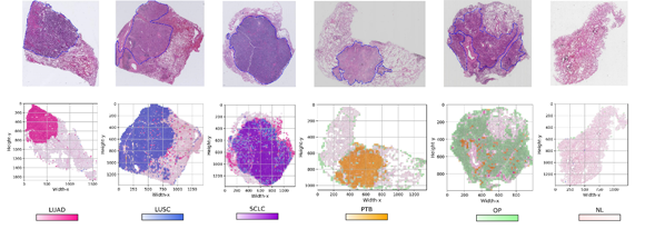 The researchers constructed the deep learning classifier of six-type lung diseases from histopathological images through supervised learning, visualized results into heat maps, further validated the model performance using independent data sets from multiple medical centers, and finally evaluated the clinical significance of the model through a human-machine comparison. The model is the first multi-classifiers to distinguish between lung adenocarcinoma (LUAD), lung squamous cell carcinoma (LUSC), non-small cell lung carcinoma (SCLC), organizing pneumonia (OP), pulmonary tuberculosis (PTB), and normal lung (NL), expanding the scope of artificial intelligence-assisted diagnosis to meet more complex diagnostic needs. The researchers tested more than 1000 pathological slices from four different medical centers, with the outcome maximum AUC of 0.978, which was highly consistent with the ground truth of clinical diagnosis. The researchers also invited four pathologists with different clinical experience to conduct a double-blind review on the images, and found the model highly consistent to the experienced pathologists.