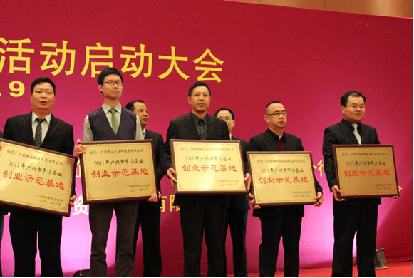 At the meeting, Vice Mayor of Guangzhou Municipal Committee Zhang Ji, Director of SME Bureau of Guangdong Province Zhang Wenxian, Deputy Director He Zuoxian, Director of Guangzhou Economic and Trade Commission Wang Xudong, and Director of Guangzhou SME Bureau Sui Yongping attended the Launching Ceremony of SMEs, Year of Service 2012 -- to Promote Services of SMEs in Guangzhou. In addition, eight enterprises were first conferred the title of SMEs Entrepreneurship Demonstration Base 2011; sixteen were conferred the Public (Technical) Service Demonstration Platform of Guangzhou SMEs; nine were conferred the Public Service Demonstration Platform of Guangzhou SMEs. On behalf of SYSU Science Park Limited Company, General Manager Chang Xiaoning received the honor.