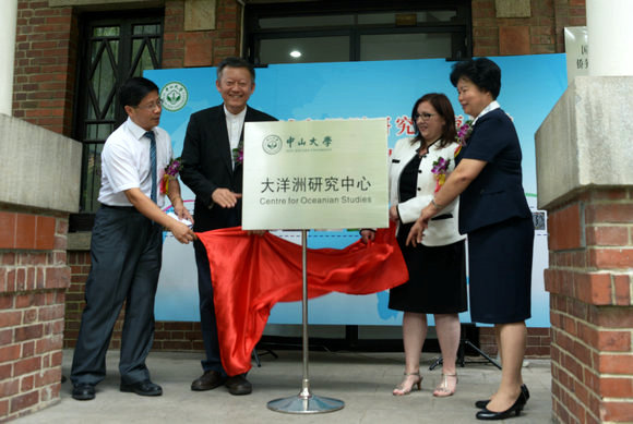 Executive Deputy Secretary and Vice President Chen Chunsheng, Vice President Wei Minghai, Deputy Director General Su Caifang, Consul-General Jill Collins jointly unveil SYSU Centre for Oceanian Studies