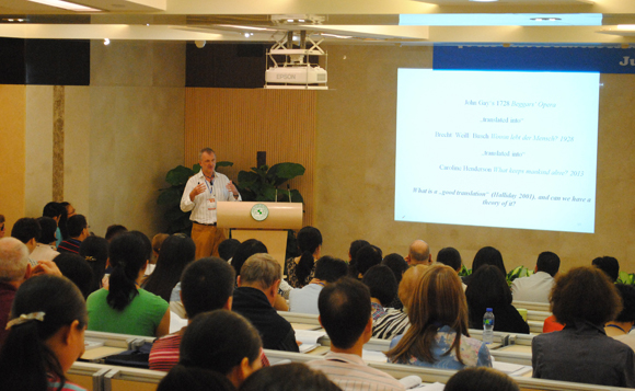 Parallel sessions involved a wide range of research topics. To name just a few, Professor Huang Guowen analyzed Ku Hung-ming’s English version of Lun Yu. Professor Kay O’Halloran demonstrated a software for analyzing videos of multimodal data. Professor Eija Ventola discussed commodification, globalization and localization of Angry Birds. Professor Michael Cummings analyzed “The Nun’s Priest’s Tale” using appraisal theory and literary stylistics.