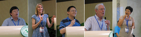 (left to right) Chang Chenguang, Geoff Thompson, M.A.K. Halliday, Wendy Bowcher, Hu Zhuanglin, Huang Guowen