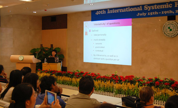 The final day of ISFC40 began with a plenary speech by Professor Yang Xueyan entitled “Modelling ‘interactivity’ of Teachers’ Questions”. Professor Yang applied SFL to the problem: how to ask question effectively in classroom interaction. She attempted to develop a model to show how interpersonal choices in teachers’ questions work to elicit answers from students. The aim of her research is to offer a framework for analyzing teachers’ questions, and meanwhile to enhance the understanding of what makes 'question’ a truly interactive event.