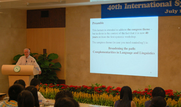 The opening ceremony was followed by a speech from the special invited guest, Professor Hu Zhuanglin. After that, Professor Halliday delivered a keynote speech entitled “That ‘Certain Cut’: towards a characterology of Mandarin Chinese”.