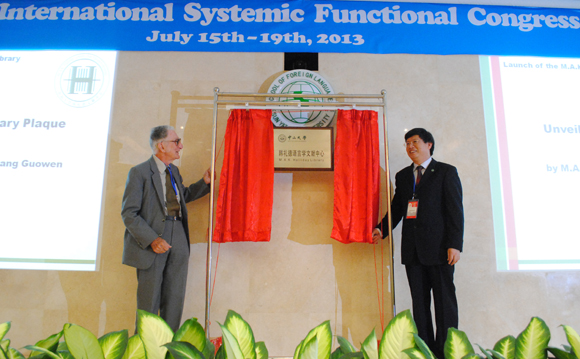 The 40th International Systemic Functional Congress (ISFC40) officially started at Sun Yat-sen University on July 15. Over 300 participants from more than 20 countries attended the congress. Professor Chang Chenguang, Dean of School of Foreign Languages, Sun Yet-sen University, chaired the opening ceremony. The ceremony began with a welcome speech from Professor Huang Guowen, Chair of the executive committee of ISFLA, followed by the launch of the M.A.K. Halliday Library and that of a new international, peer-reviewed journal Functional Linguistics. The launch was chaired by Professor Wendy Bowcher. Professor Chang Chenguang gave a brief introduction to the M.A.K. Halliday Library, and then Professor Halliday and Professor Huang Guowen unveiled the library plaque. This was then followed by congratulatory remarks by Professor Ruqaiya Hasan, Professor David Butt, Professor Fang Yan and Professor Jonathan Webster.